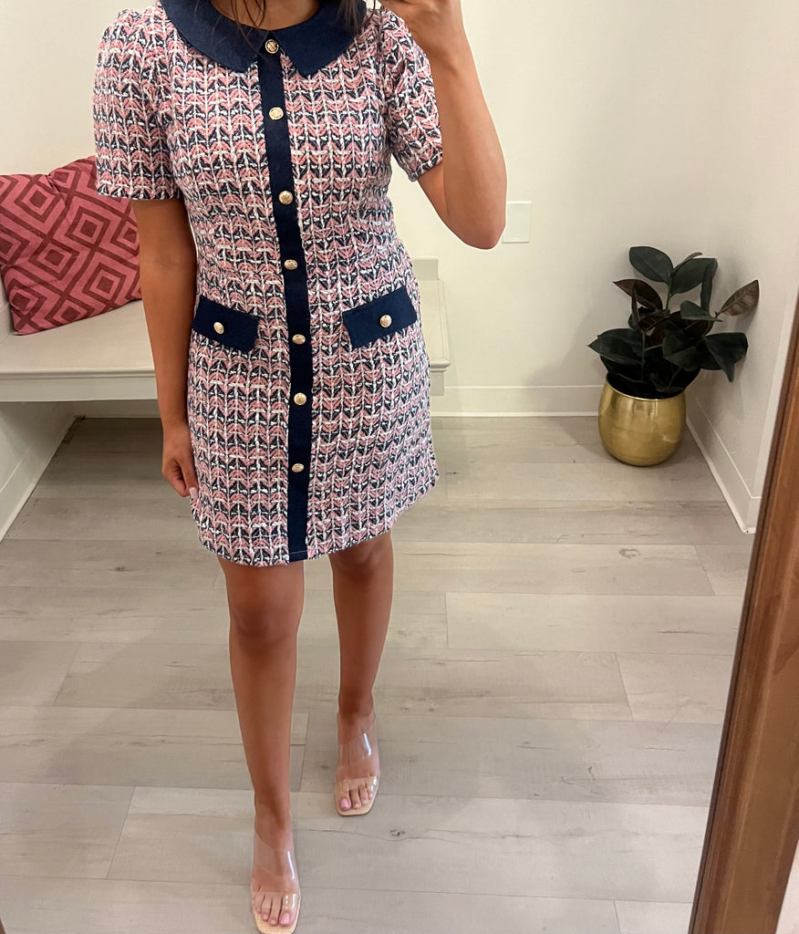 Home › Dresses › Abbie ButtonUp Tweed Dress Rose