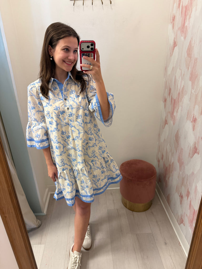 • Emme 3/4 Bell Slv Floral Dress Bl