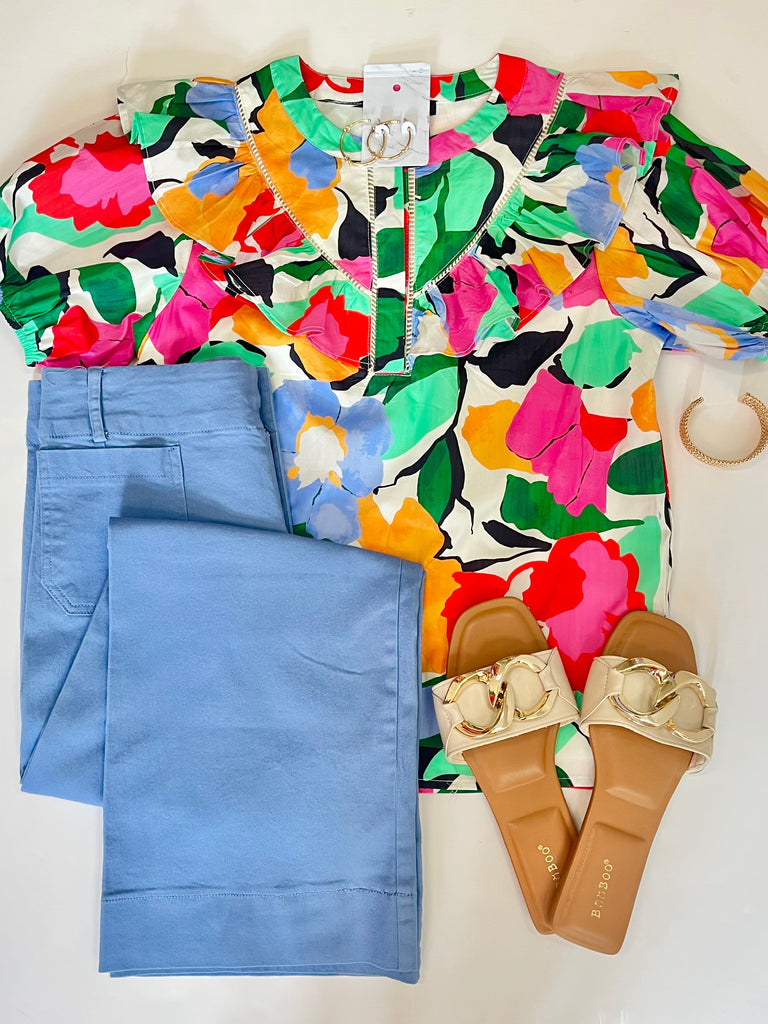 Home › SALE › Crew Neck Ruffle Detail SS Top