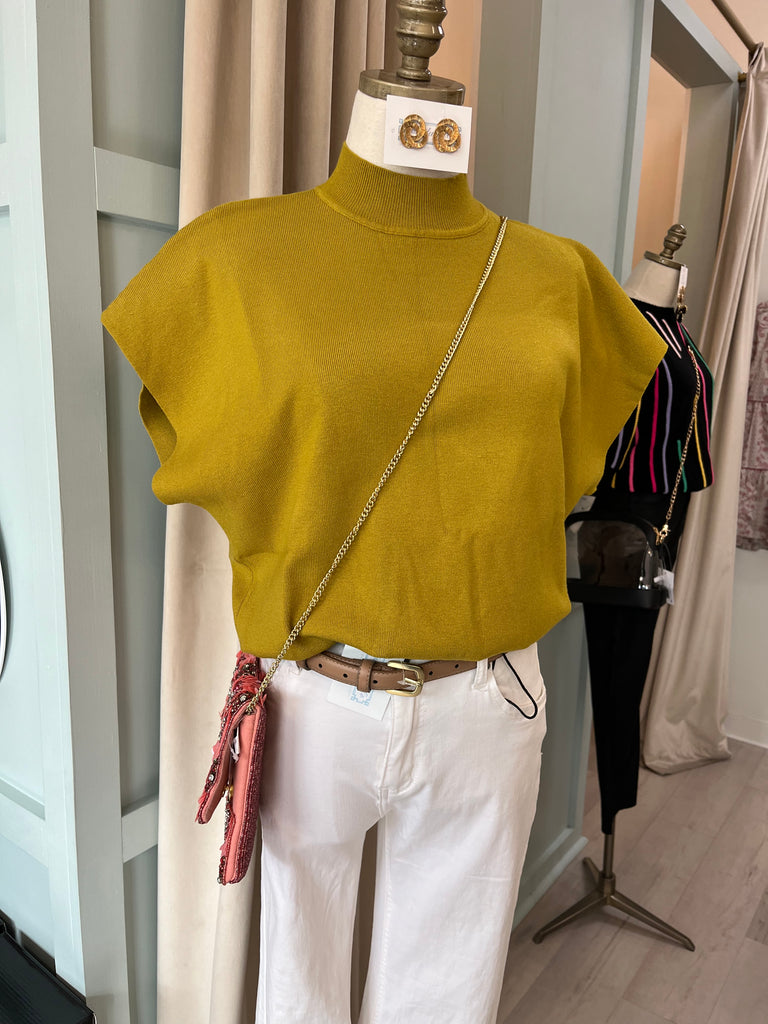 Knit Mock Neck SS Top Pistachio