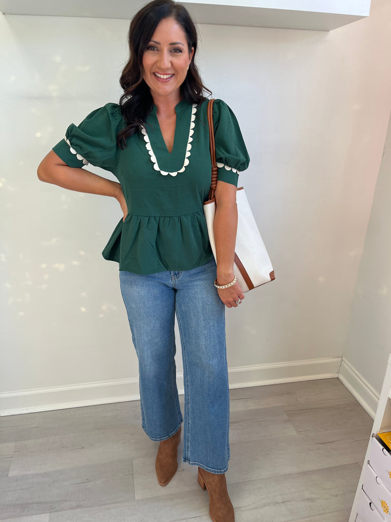 Peplum Ric Ric Top Green